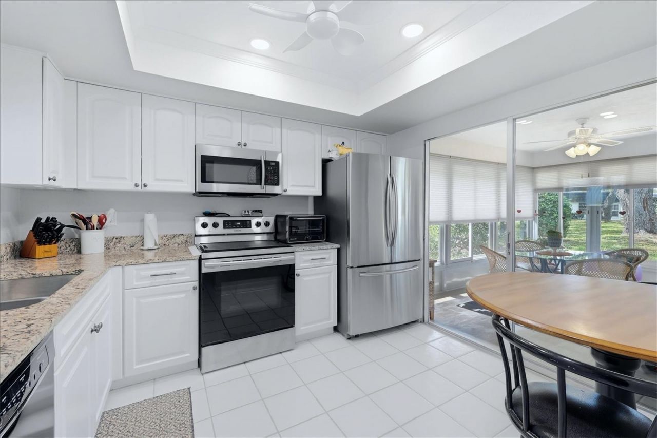 55+ GLEN OAKS RIDGE Active Community Close to Downtown Sarasota, Lido Beach/St. Armand's, UTC, I-75 and SRQ Airport! BEAUTIFULLY UPDATED AND END UNIT SINGLE STORY VILLA WITH PRIVATE DRIVEWAY AND CARPORT. Fall in love with the EASY LIFE in this 2 bedroom, 2 bath villa with updated kitchen, flooring, IMPACT hurricane rated replacement windows, updates to the bathrooms, large updated laundry room with wash tub and newer hot water tank. New Mission style impact front door, newly screened front porch, paver courtyard. Enjoy your park-like canopy tree vistas in the back yard. The Condo fee includes Water, Sewer, Trash, Cable TV, Building insurance, Building Maintenance, Ground Maintenance, Roof repair/replacement, Exterior painting/power washing, Rec Center, Pool/pool maintenance, on site management, etc. There are NO units above you, NO units below you and you are in an end unit for more privacy! This is a pet friendly community allowing up to two pets! Welcome to paradise where BOBBY JONES golf course is walking distance away! Room for up to 3 cars in your driveway AND Lots of guest parking only a few feet away! $192,500