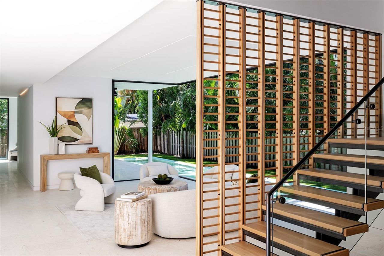 Stunning New Construction by Award-Winning Architect Dan Lear in coveted West of Trail Neighborhood** This meticulously designed luxury home offers the perfect blend of modern elegance and timeless sophistication. Near Selby Gardens, Morton's Market, and Sarasota Memorial Hospital, this exceptional property provides both convenience and style. Spanning over 3,800sqft of living area, this expansive residence boasts four spacious bedrooms, five full bathrooms, a enormous den with terrace, and a dedicated office space, all thoughtfully crafted for contemporary living. The grand, open-concept great room is the heart of the home, seamlessly floating over the pool area with a stunning large corner pocketing glass door that connects the interior to the beautifully landscaped outdoor oasis. The second floor features three guest suites, each with its own private terrace, offering tropical views and tranquility. The home's striking exterior showcases luxurious vein-cut travertine, creating a refined, sophisticated look. This is an extraordinary opportunity to move right in to a worry free one-of-a-kind masterpiece.