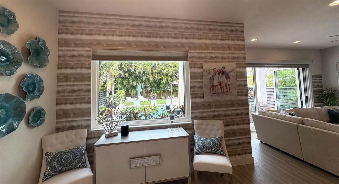 2017 contemporary home by DSDG Architects & Majestik Homes with new 2024 impact windows & sliders throughout is ideally situated on a prestigious, tree-lined street in the heart of Sarasota. This 3-bedroom, 2.5-bath home blends modern design with refined comfort. Step inside to an open-concept layout highlighted by soaring 10-foot ceilings, sleek porcelain tile flooring, and expansive new windows that flood the home with natural light while framing serene views of the private backyard oasis. New sliding glass doors fully open to create seamless indoor-outdoor living, extending into an expansive entertaining space complete with a stylish poolside pergola. The tropical landscaped backyard is thoughtfully designed with low-maintenance synthetic turf, a custom putting green, and a stunning heated saltwater pool enhanced by LED color lighting. At the heart of the home, the gourmet kitchen is a true showpiece, featuring premium stainless-steel appliances, a Fisher & Paykel dishwasher, a striking waterfall quartz island with integrated breakfast bar, sleek custom cabinetry, and a built-in pantry designed for abundant storage. Upstairs, a versatile loft anchors the level, alongside two guest bedrooms connected by a Jack-and-Jill bath and a sophisticated primary suite. The primary retreat features dual custom walk-in closets and a spa-inspired ensuite. Sliding glass doors open to a private second-story balcony-an ideal setting to take in tranquil pool views and softly lit evenings. Modern elegance, indoor-outdoor living and perfectly positioned near Siesta Key, top-rated schools, shopping, dining, and downtown Sarasota, this exceptional residence offers the ultimate Florida lifestyle.
