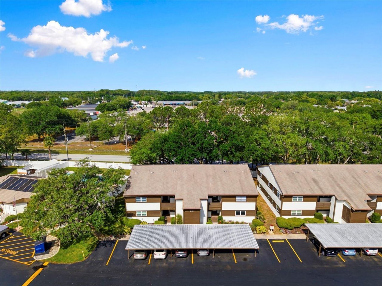 One or more photo(s) has been virtually staged. WELCOME TO YOUR SWEET HOME at 4101 Passport Ln #203, New Port Richey, FL in the WONDERFUL 55+ community of Woodtrail Condominiums. This 2nd level unit has an OPEN FLOOR PLAN with 1251 heated sqft. As you step through the front door, you will LOVE how BRIGHT & AIRY this home feels! This NICE condo features an OPEN FLOOR PLAN consisting of the foyer, kitchen & dining room & EXTRA LARGE living room. Natural SUNSHINE streams through the multiple windows ILLUMINATING the interior together with the light fixtures. The well-equipped kitchen comes with TILE FLOORS, PLENTIFUL cabinets with hardware, expansive laminate counters, breakfast bar, deep double stainless steel sink, cute fan & appliances including fridge, smooth-top range, microwave, dishwasher & water purification system located under the sink. The MASSIVE living room features a big picture window overlooking greenery & serene views. In fact the living room is so big that it can be designed as a home office, gym, craft room or reading nook. The kitchen, foyer, dining room & bathrooms feature easy to maintain ceramic tiles. The SPACIOUS primary bedroom can easily accommodate king-size furniture & has a ceiling fan, walk-in closet, a SECOND CLOSET with triple mirrored sliding doors & en suite bathroom. The SENSUAL private bathroom consists of a sink, vast countertops, wood vanity, medicine cabinet & a tiled tub/shower combo with DUAL SHOWER HEADS & frosted sliding doors. In this split bedroom plan, the second bedroom & bathroom are located on the opposite wing of the home. The guest king-size bedroom features ample closet space with mirrored sliding doors & ceiling fan. The OVERSIZED second full bathroom has a matching vanity cabinet, exhaust fan, bright light & a tub/shower combo with frosted sliding glass doors & private toilet area. The WASHER & DRYER are included for the LUCKY new buyer. Another WONDERFUL UPDATE: The AC was recently serviced to make sure it is running properly. This condo comes with a reserved CARPORT parking space & personal utility shed located just outside the front door. Low HOA fee of $450/month includes amenities like HEATED pool, clubhouse, gym, private road, cable TV, internet, all exterior lawn/pest maintenance, trash & roof. One small pet is welcome. The Woodtrail condo community hosts many social events like bingo, card games, information sessions and pool parties. Your MARVELOUS condo will faces East so you can enjoy the setting sun painting the sky in VIBRANT COLORS every evening. CRUISE over to DOWNTOWN New Port Richey featuring FANTASTIC restaurants, taverns, festivals, shopping & professional offices. Sims Park is PHENOMENAL for everyone with a playground, splash pad, walking paths along the river & an outdoor amphitheater. The public boat launch is just a few short minutes away where you can take your boat directly to the Gulf of Mexico or enjoy kayaking down the river. Robert K. Rees Beach Park is a few miles away! The City of New Port Richey is BUSTLING & THRIVING! Location is IDEAL near schools, beaches, medical plazas, shopping centers, restaurants, places of worship, airport & tourist attractions. MAKE THIS YOUR FUTURE HOME!