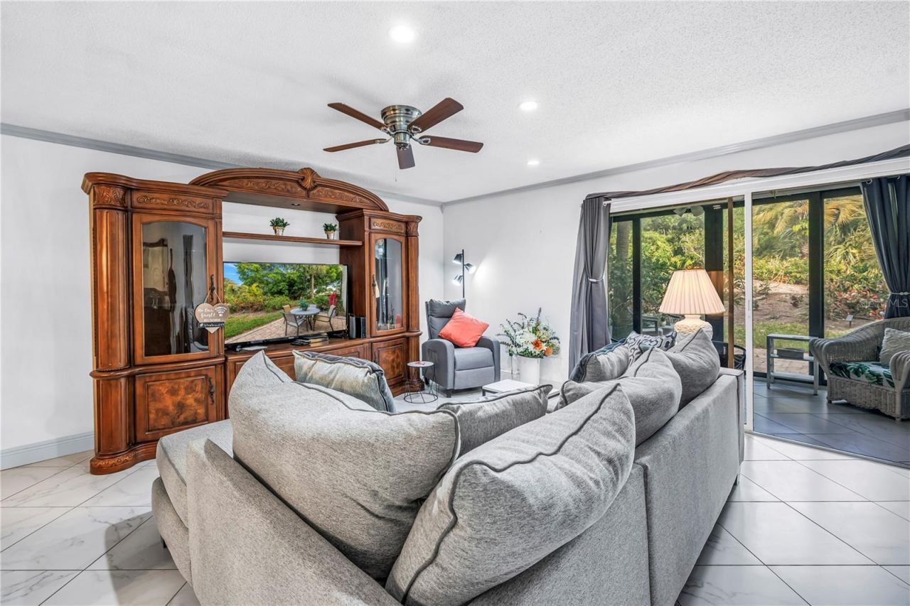 Welcome to popular Spring Lakes a dedicated bird and wildlife sanctuary evidenced as you meander through the lushly landscaped neighborhood. This ground level home is uniquely different from most other floor plans in that the updated kitchen is large enough for a sizeable dining table in addition to a darling coffee station and full-size washer and dryer. Updates include deep quartz sink and counter tops, pull out pantry drawers, soft close 42 upper cabinets and drawers and attractive tile backsplash complimented by ambient lighting. The split plan provides for maximum privacy with bedrooms separated by the living/dining rooms. No mismatched floors in this continuously tiled on the diagonal floors throughout the entire home, complimented by updated baseboards and crown molding in the living/dining room. Both baths have been updated with quartz counters on the newer vanities and safety grab bars installed in the showers with the primary bath having plenty of closet space including a walk in. It is offered fully furnished and, most importantly, all windows have been replaced with expensive storm rated windows and sliding doors maximizing efficiency and noise reduction. You will enjoy the view and sitting on the private 22X10 beautifully pavered patio overlooking more Florida fauna. This phase of Spring Lakes is also one of the few if not only, that has been granted permission for pickup trucks and the roofs were replaced in 2025 and is completely paid for. The AC and water heater were replaced in 2025 so all of the big-ticket items have been accounted for. This lovely Florida landscaped neighborhood offers several pools and spas as well as tennis and pickleball courts that many of the residents enjoy daily. The location is the best of the best being 5 to 20 minutes from everything Manatee County has to offer including our wonderful white sandy beaches, golfing, boating, groceries, retail shopping, medical facilities, houses of worship, live and on screen theaters, museums, tons of sport venues, shop till you drop at UTC Mall and famous St Armands Circle, Downtown Bradenton's River Walk, and last but not least, Sarasota Bradenton International Airport. Come make this special home yours before it is gone.