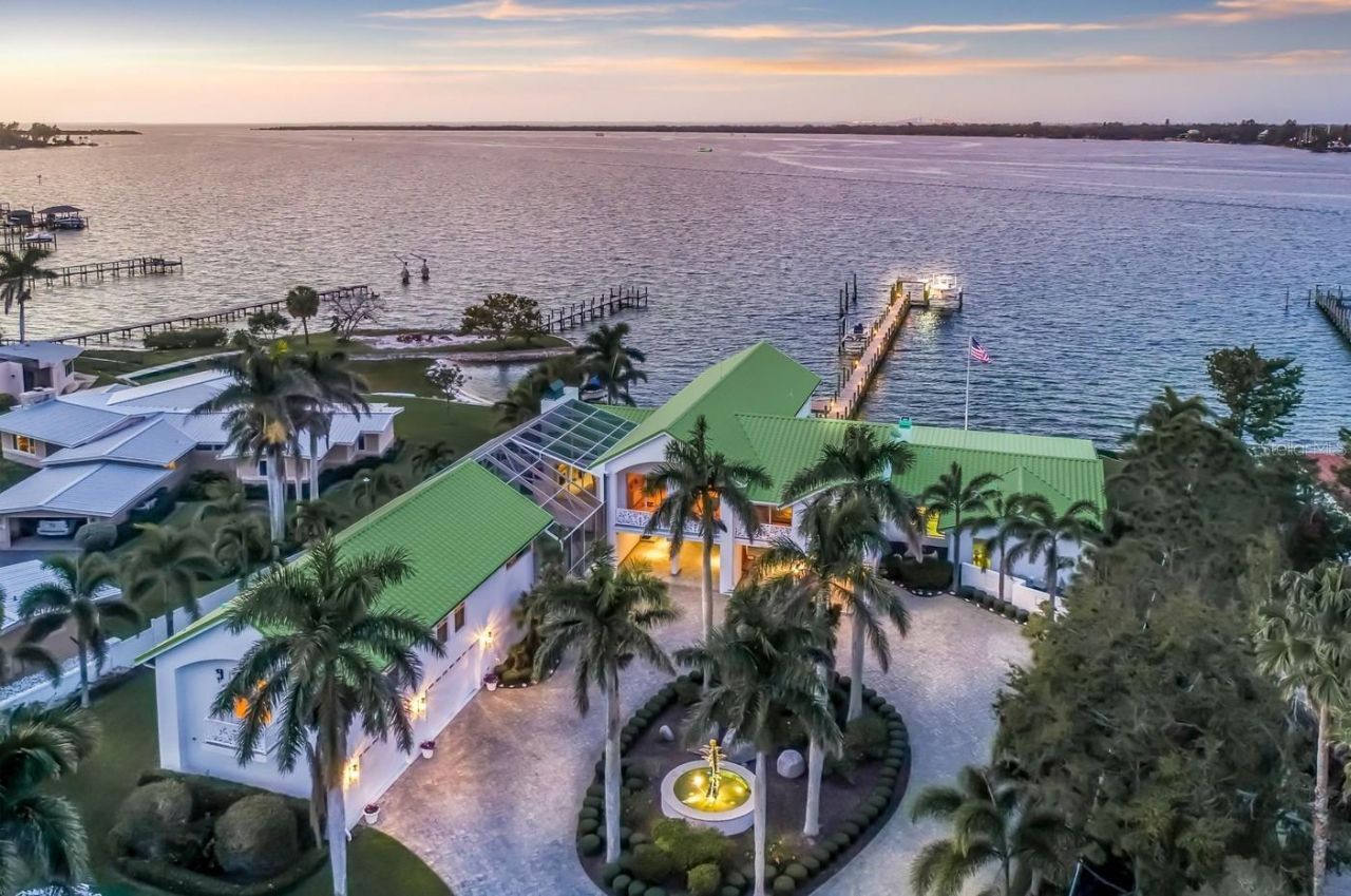 EXTRAORDINARY IN EVERY DETAIL, this GATED RIVERFRONT ESTATE embodies the pinnacle of LUXURY WATERFRONT LIVING! Perfectly positioned on nearly three quarters of an acre along one of the widest stretches of the Manatee River, this artfully designed residence offers 5 bedrooms, 5.5 bathrooms including a private guest apartment, 7,679 square feet of living space, and over 11,000 total square feet, all curated with uncompromising craftsmanship. A private entry through a hand carved iron gate reveals a stunning courtyard with a custom fountain, setting a grand and inviting tone. Inside, refined architectural detail meets relaxed coastal elegance with soaring vaulted ceilings, solid core doors, porcelain tile, bamboo flooring, plantation shutters, and intricate custom millwork. Walls of glass frame sweeping river views, filling the home with natural light while seamlessly connecting indoor and outdoor living. The first floor primary suite is a secluded sanctuary, featuring a private library and an adjacent bedroom ideal for flexibility. The spa inspired bath is a true retreat with dual vanities, a soaking tub, an expansive walk in shower, and a custom designed walk in closet complete with built ins and a center island. An elevator provides seamless access to all levels, where additional bedrooms are generously sized and thoughtfully positioned for privacy. Multiple living areas offer incredible flexibility for a media room, fitness studio, office, or lounge spaces, allowing the home to adapt effortlessly to any lifestyle. The detached guest house further enhances the estate with its own living room, kitchenette, and oversized ensuite bedroom, creating a private and comfortable retreat for visitors. Outdoor living unfolds like a tropical resort. Multiple balconies and screened terraces capture panoramic views across the mile wide river, while the gorgeous pool and spa are surrounded by lush tropical landscaping, creating a serene and secluded oasis. A rare white sandy beach along the river's edge enhances the setting, offering a truly coastal experience rarely found on the Manatee River. The deep water dock is equipped with two boat lifts and provides direct access to Tampa Bay and the Gulf, ideal for boating, fishing, and sunset cruises right from your backyard. Additional features include a generator, a 3 car garage, and an additional 3 car carport providing ample space for vehicles and guests. A rare offering on one of Bradenton's most prestigious riverfront addresses, this estate delivers an unparalleled blend of privacy, scale, and resort style living-where every detail is intentional and every day feels like a waterfront escape!